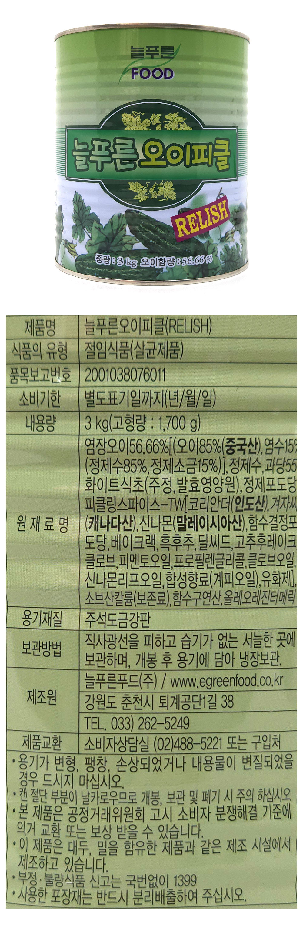늘푸른 렐뤼시오이피클(다진피클) 3kg
