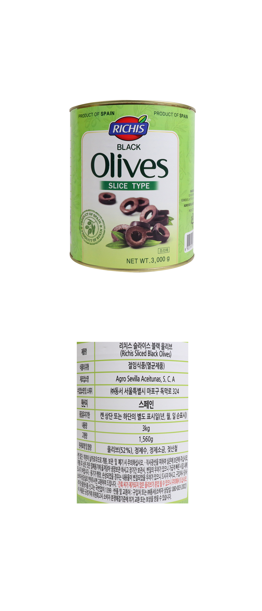 올리브(52%), 정제수, 정제소금, 젖산철