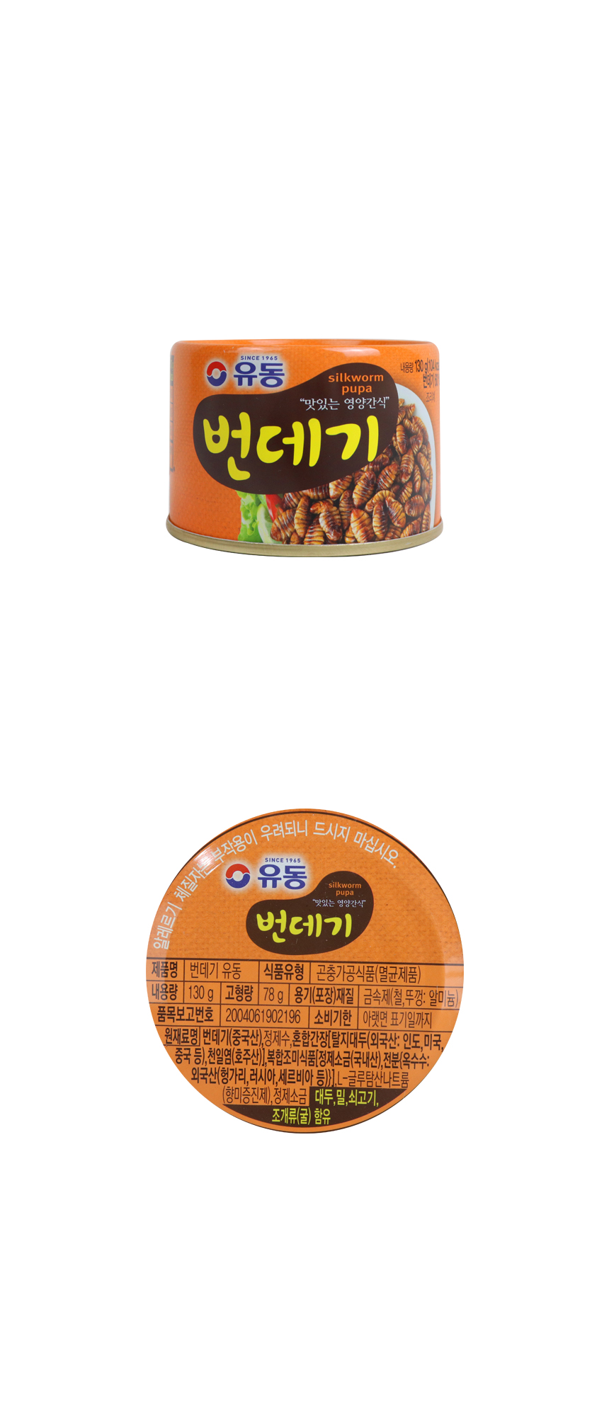 번데기(중국산), 정제수, 혼합간장(탈지대두(외국산: 인도, 미국, 중국 등), 천일염(호주산)), 복합조미식품(정제소금(국내산), 전분(옥수수: 외국산(헝가리, 러시아, 세르비아 등))), L-글루탐산나트륨(향미증진제), 정제소금 * 대두, 밀, 쇠고기, 조개류(굴) 함유