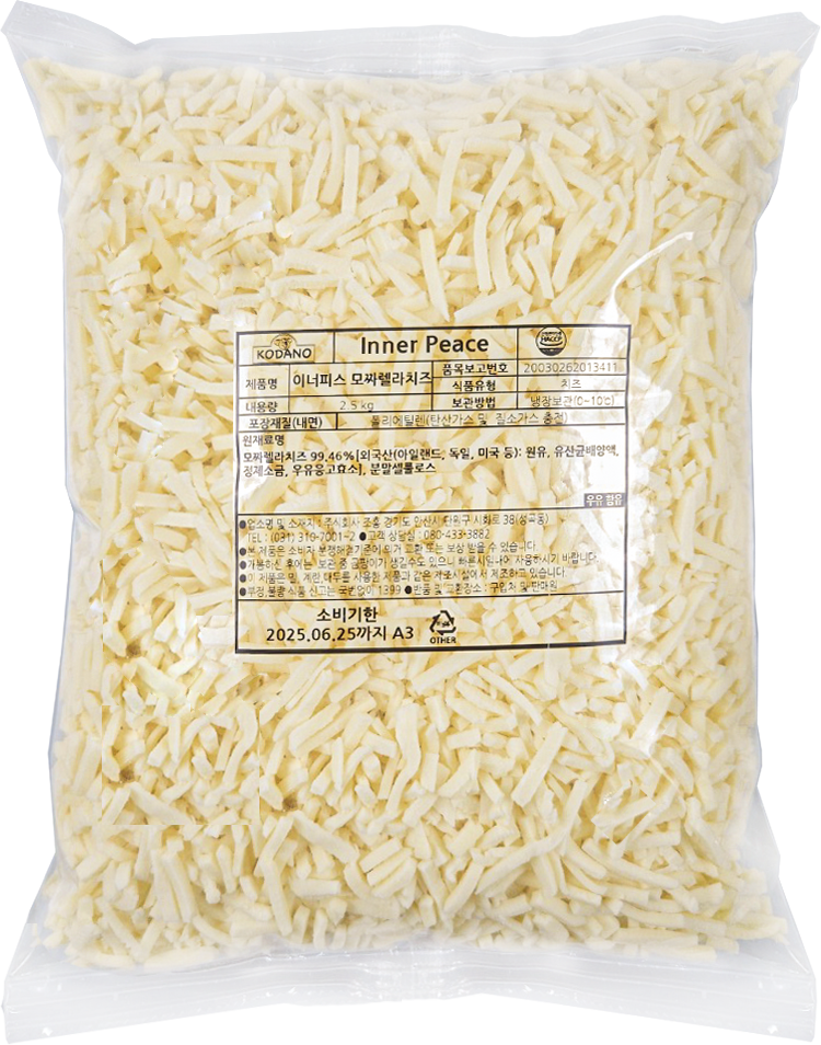이너피스 자연산 모짜렐라 피자치즈 (자연100%,냉장) 2.5kg 이미지