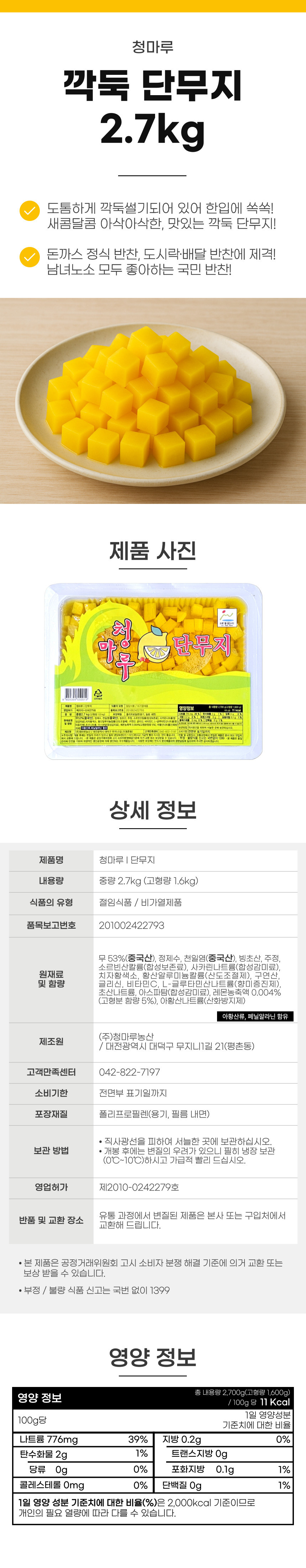 청마루 깍둑단무지 2.7kg (반찬,업소용)