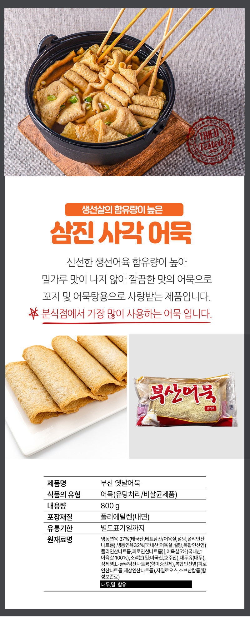 간단설명 : 대표적인 꼬지 및 어묵탕용 어묵으로