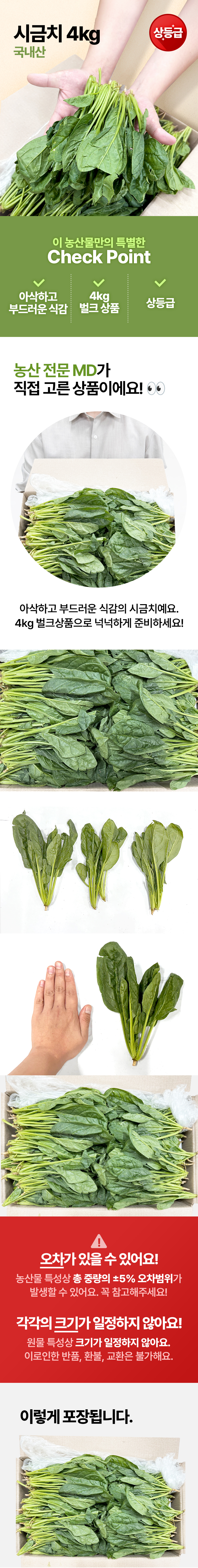 ★매일시장특가★ 시금치(상 4Kg/BOX) 김밥재료 김밥용 초특가 채소 야채