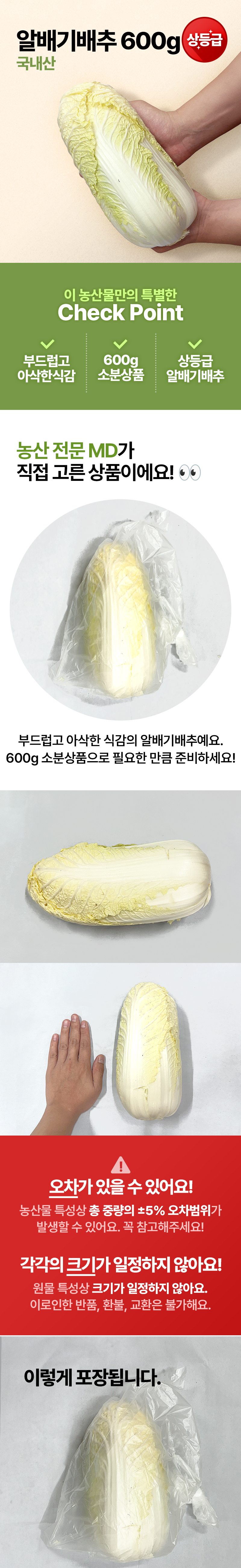 ★매일시장특가★ 알배기배추 특 600g내외/EA 초특가 채소 야채 알배기 이미지