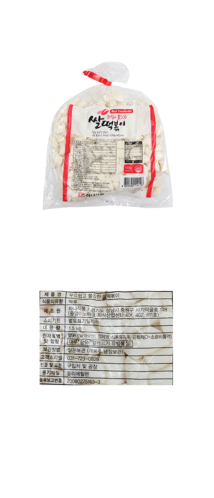 [평일 오후 4시 주문마감] 하나식품 절단小 쌀떡볶이 1.5kg