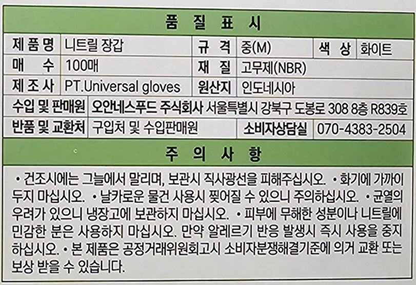 쿡샵 니트릴장갑 M/화이트/100매  1곽 이미지