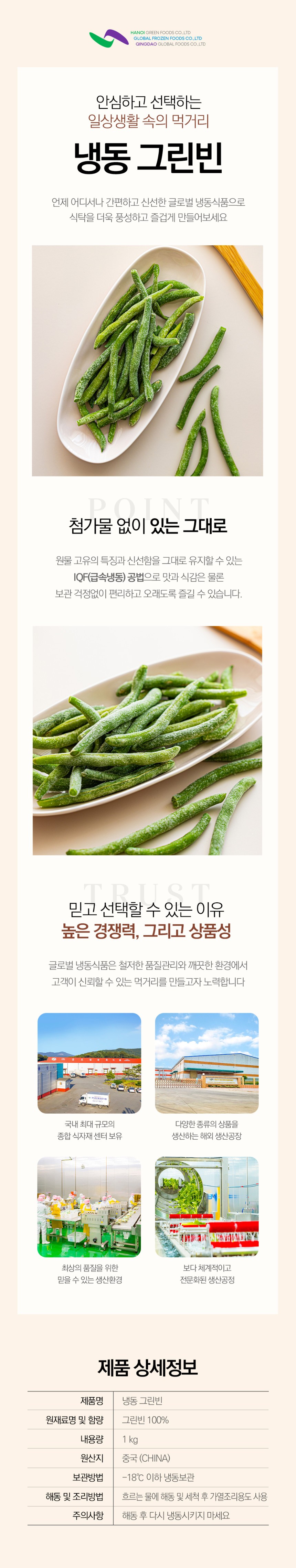 냉동 그린빈 1kg 그린빈스 홀 줄기콩