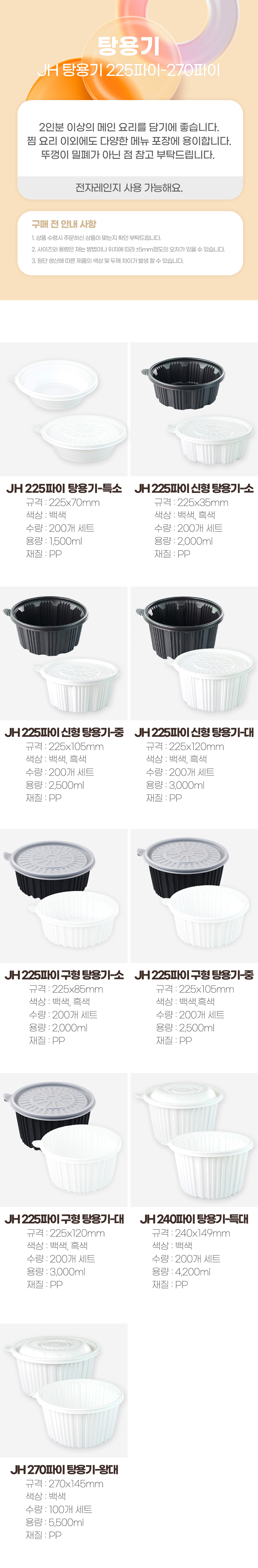 ![[JH] 일회용 225파이 탕용기 신형 중 백색 200개세트[몸통+뚜껑] 이미지](https://content.foodspring.co.kr/vendor/2550/images/93_3374483891_r.jpg?f=webp&s=876x876&t=inside)