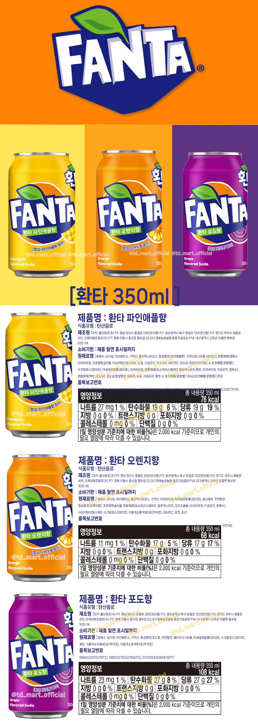 ★환타 전 제품 355ml -> 350ml로 변경되었으니 이용에 참고 바랍니다. 해당 사유로는 반품 불가합니다.★