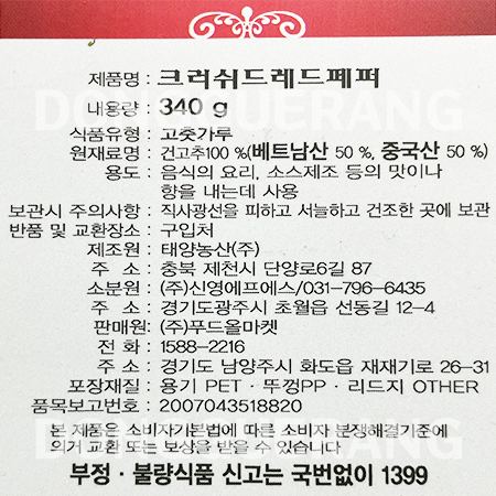 크러쉬드 레드페퍼(고춧가루/건고추)340g ea