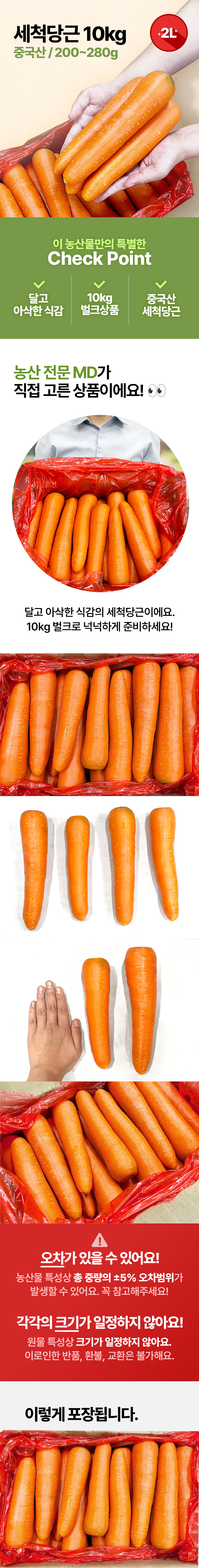 ★매일시장특가★ 세척당근(중국산 2~3L 200g이상 10kg/BOX) 당근