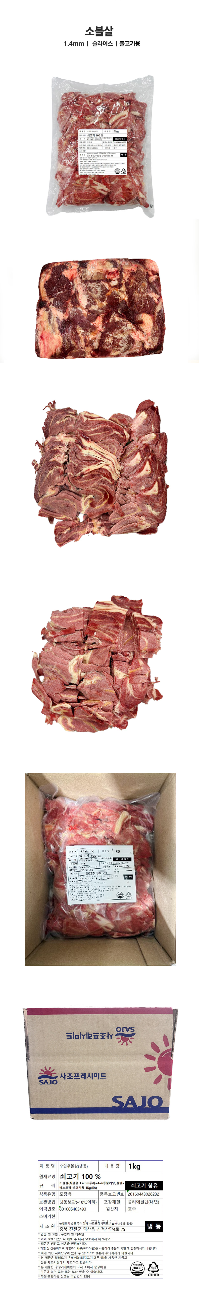 ♥정육특가♥ 제육용 소볼살(호주산 냉동 1.4mm 슬라이스 1kg/EA) 이미지