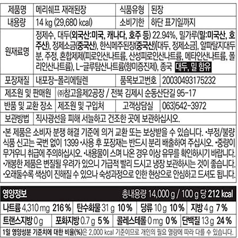 메리쉐프 재래된장(지함_골드 14Kg/EA)