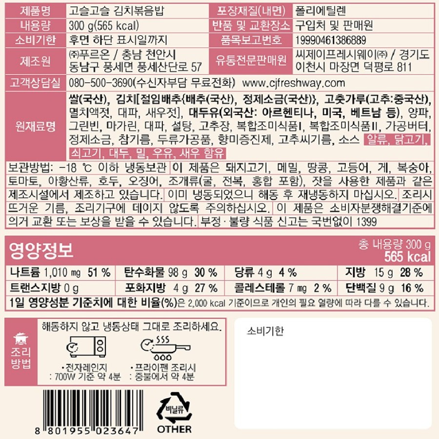 이츠웰 고슬고슬김치볶음밥(NEW 300g/EA)