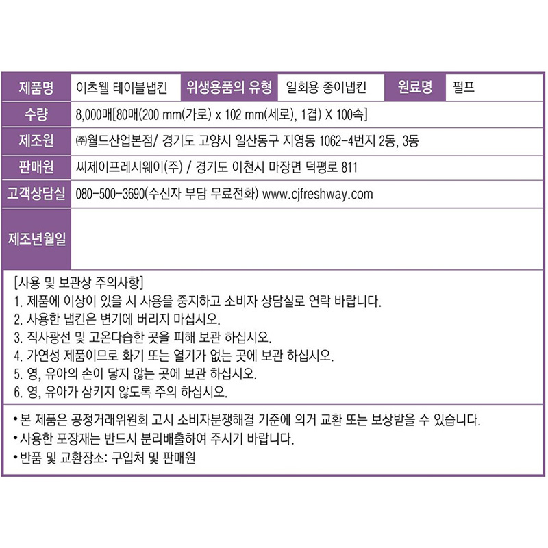 이츠웰 테이블냅킨(실속 NEW_80매*100속 BOX)