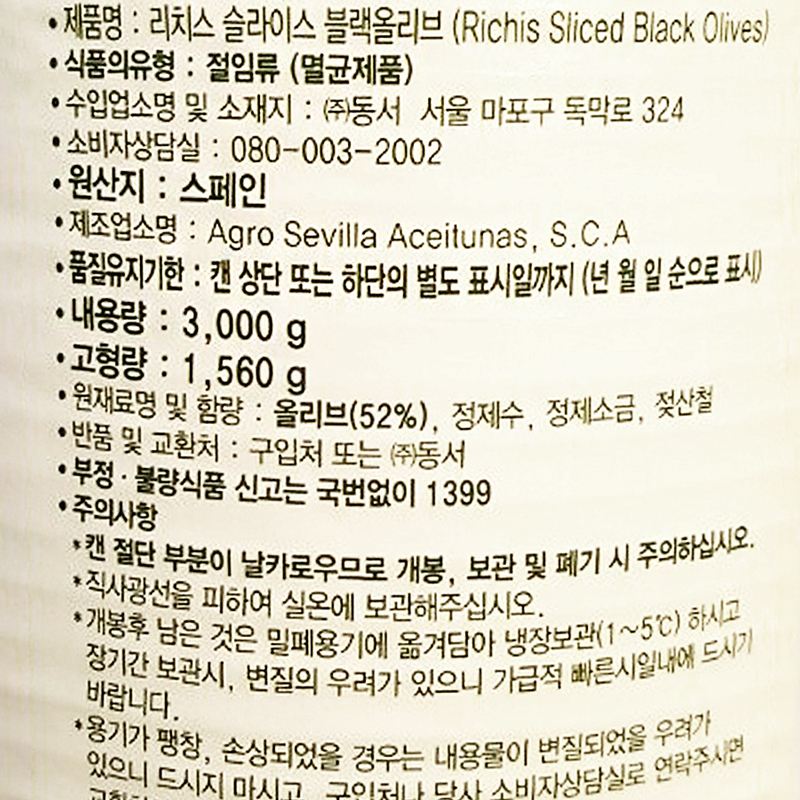 리치스 올리브(블랙_슬라이스 3.05Kg/EA)