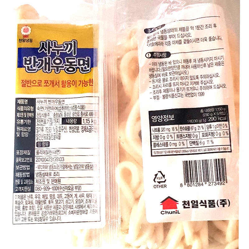천일식품 사누끼우동면(반개면_230g*5개입 1.15Kg/EA)