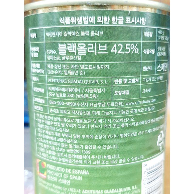 엑셀렌시아 올리브(직수입_블랙_슬라이스 400g/EA) 이미지