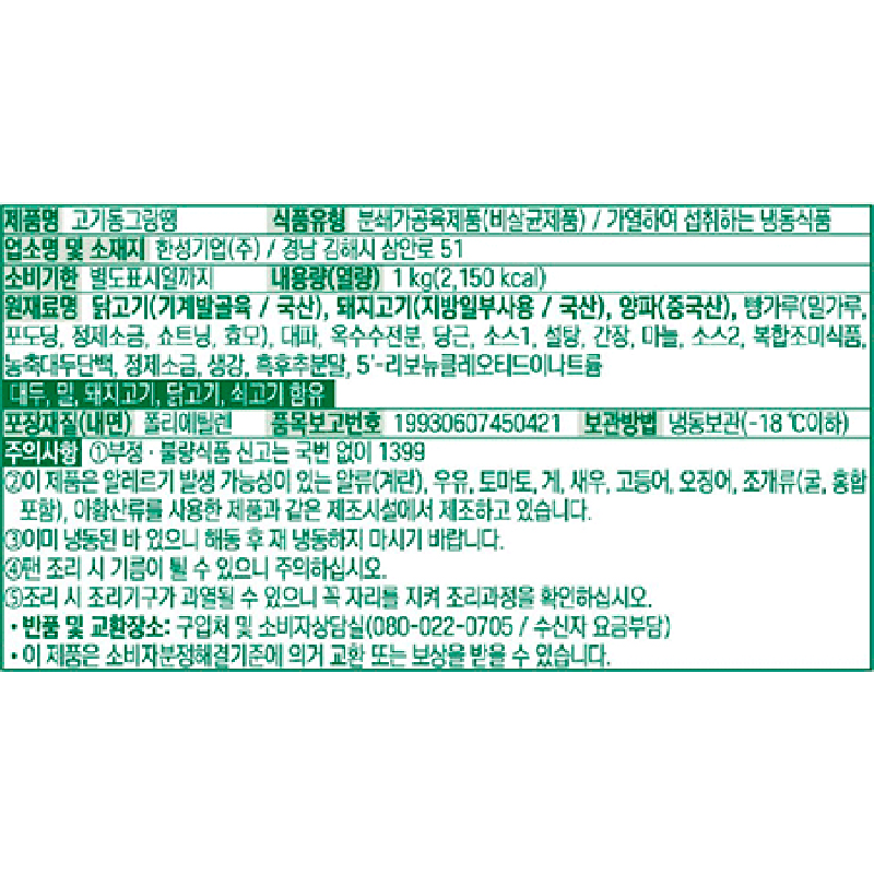 한성 고기동그랑땡(18g*55±3개입 1Kg/EA)