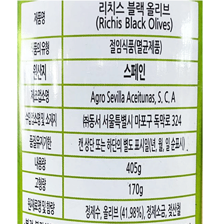 리치스 올리브(블랙_슬라이스 400g/EA) 이미지