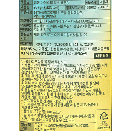 본 제품은 제품입고일별 소비기한 또는 품질유지기한이 상이하므로, 필요시 고객센터로 문의하여 주십시오. 제조일로부터 730일 까지