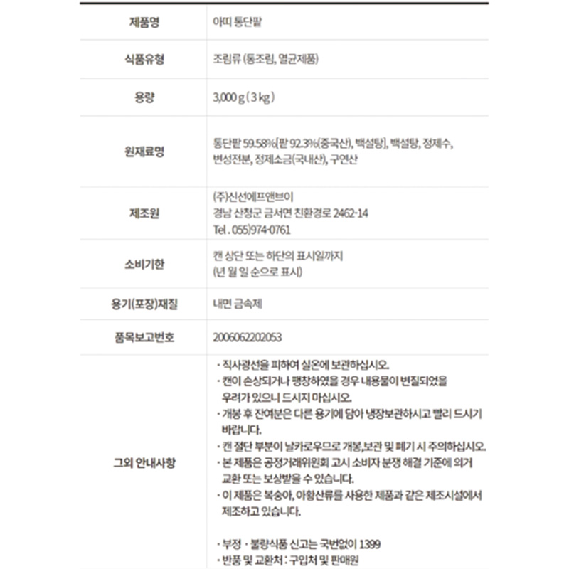 아띠 빙수팥(캔 3Kg/EA)