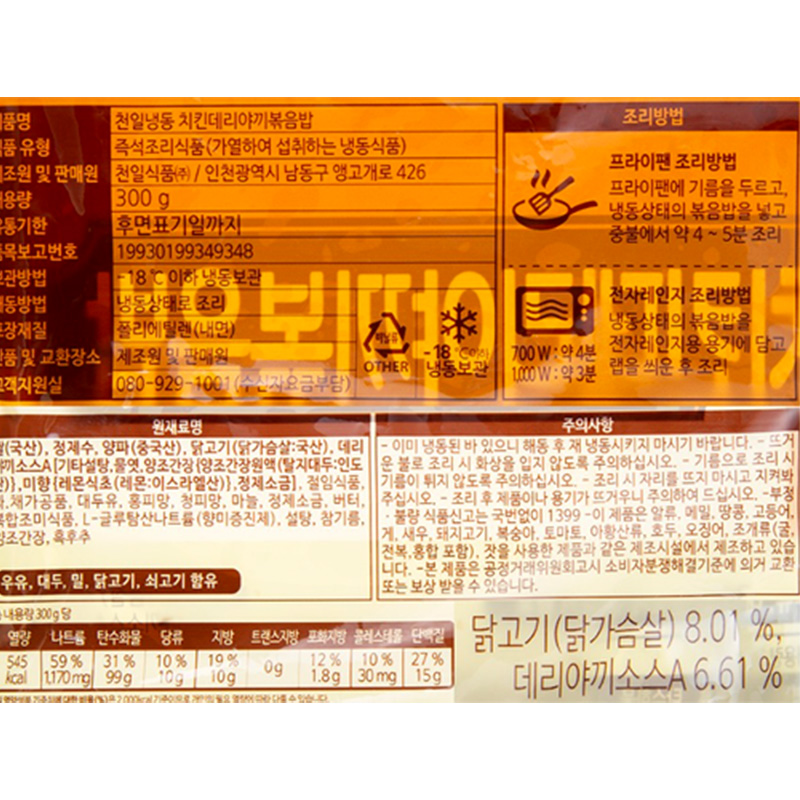 천일식품 치킨데리야끼볶음밥(300g/EA)