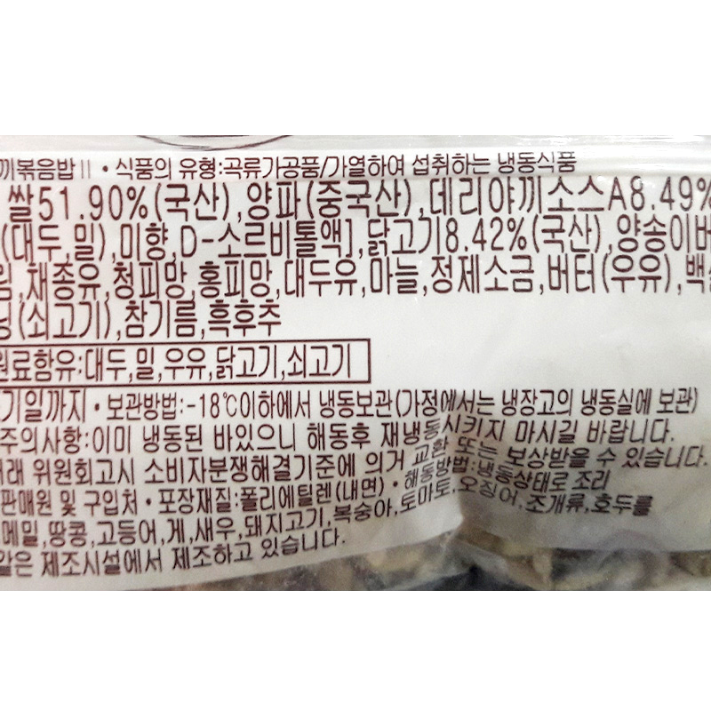 원재료명 및 함량