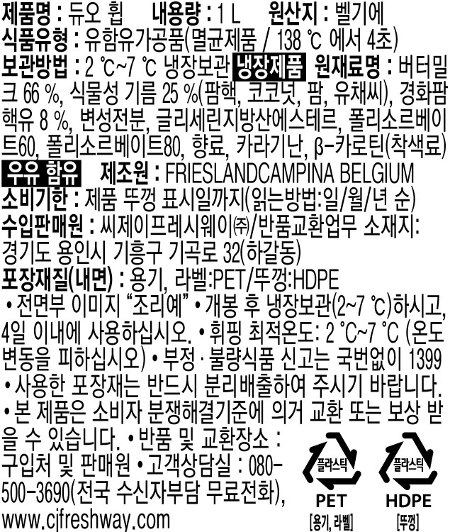 ★초특가★ 데빅 휘핑크림 (듀오휩 1Kg/EA) 이미지