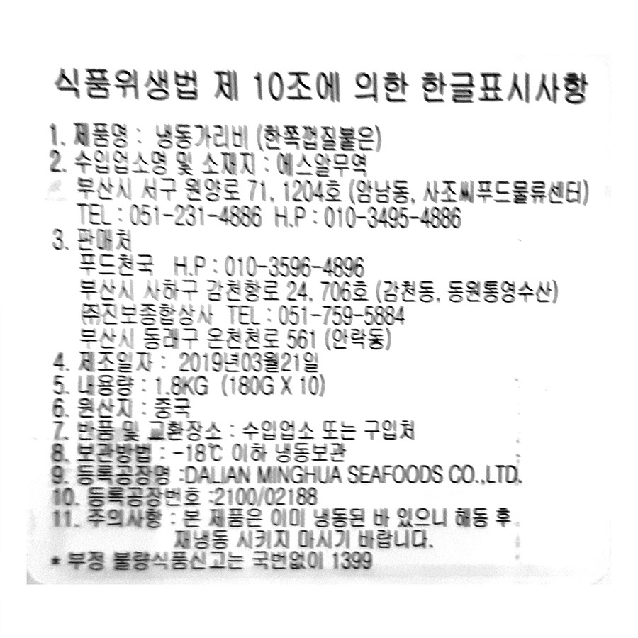 수입식품안전관리특별법에 따른 수입신고를 필함