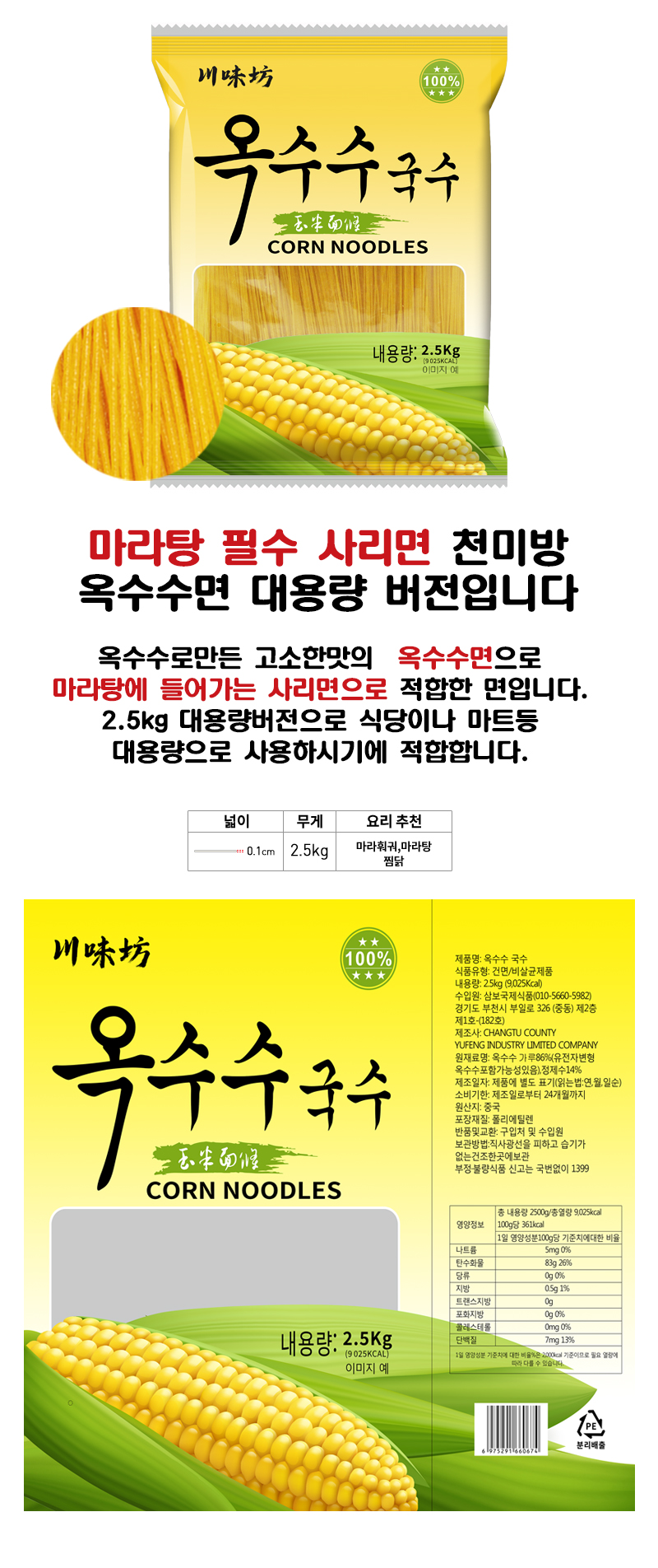 천미방 옥수수면 2.5kg 옥수수국수 온면 사리 [川味方 玉米面条] 이미지