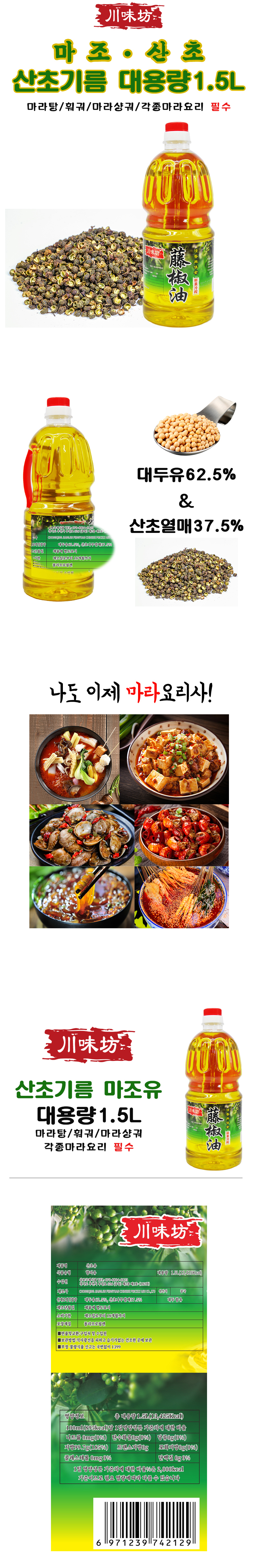 천미방 산초기름 1.5L 마조유 화조유 마라유 [川味坊 藤椒油 麻油] 이미지