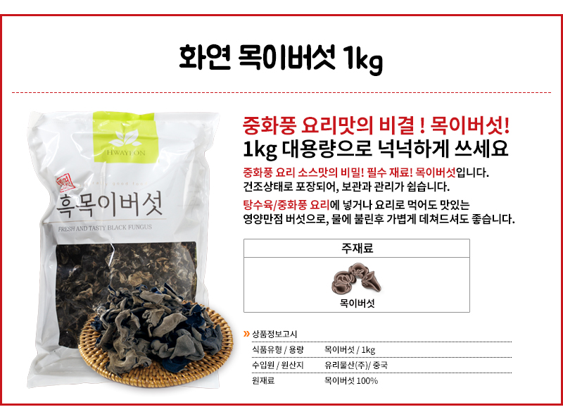 [교차출고] 화연 흑 목이버섯 1kg (중국산) [木耳]