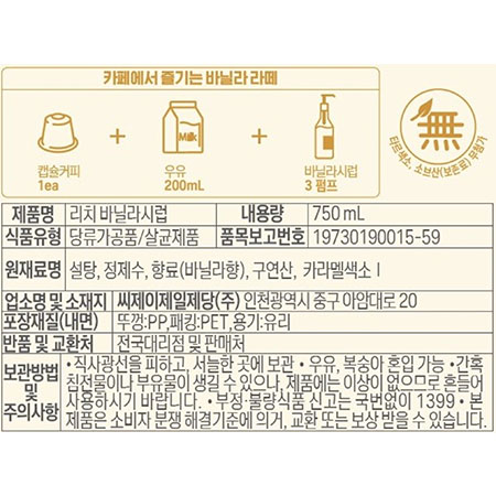 메티에 리치바닐라시럽(750ml 973g/EA) 이미지