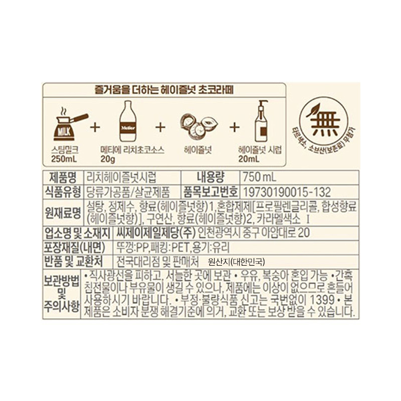 메티에 리치헤이즐넛시럽(750ml 969g/EA) 이미지