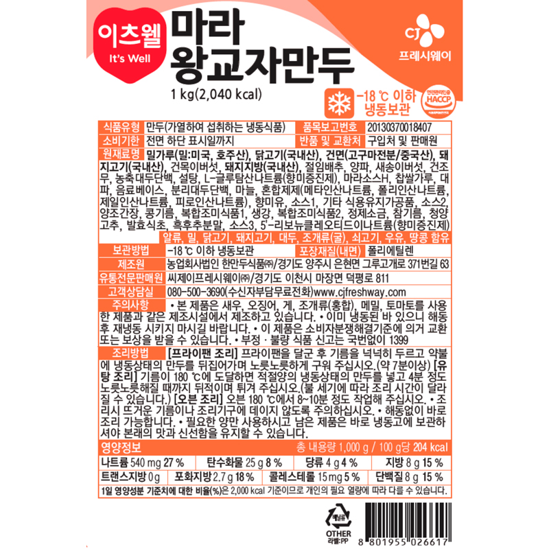 이츠웰 마라왕교자 마라만두(33g내외*30입 1Kg) 만두 마라맛만두 이미지
