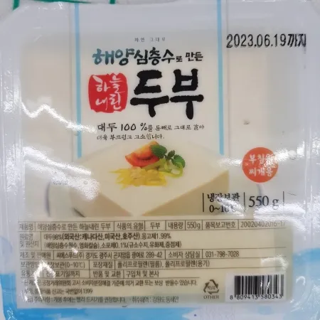 두부(하늘내린/한모/해양심층수/수입콩/참실)550g 이미지