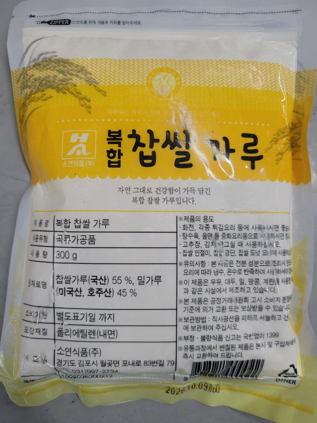 찹쌀가루(혼합/소연 /국산55%,밀가루45%)300g
