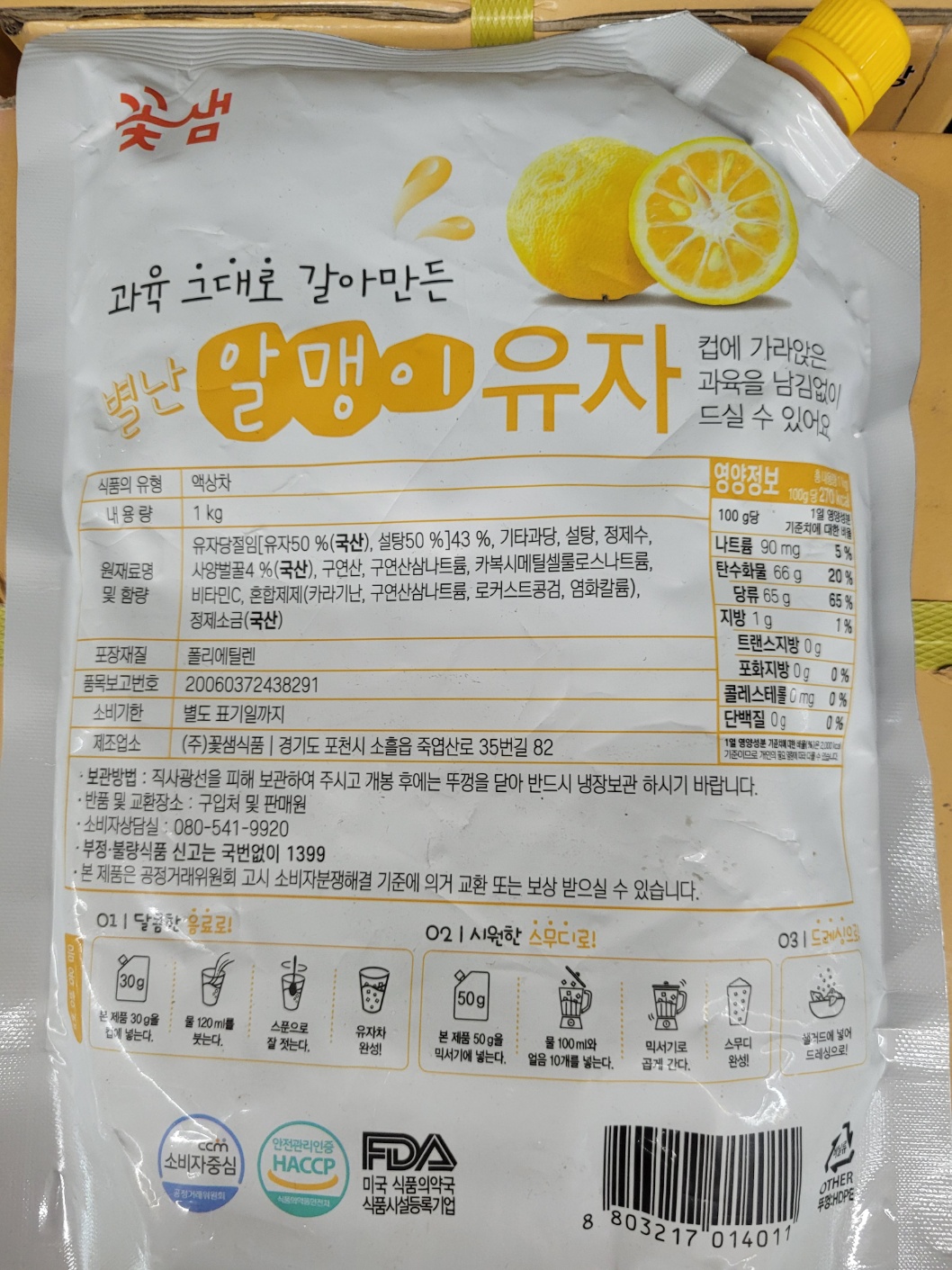 유자차(알맹이/꽃샘/스파우트/다녹)1kg 이미지