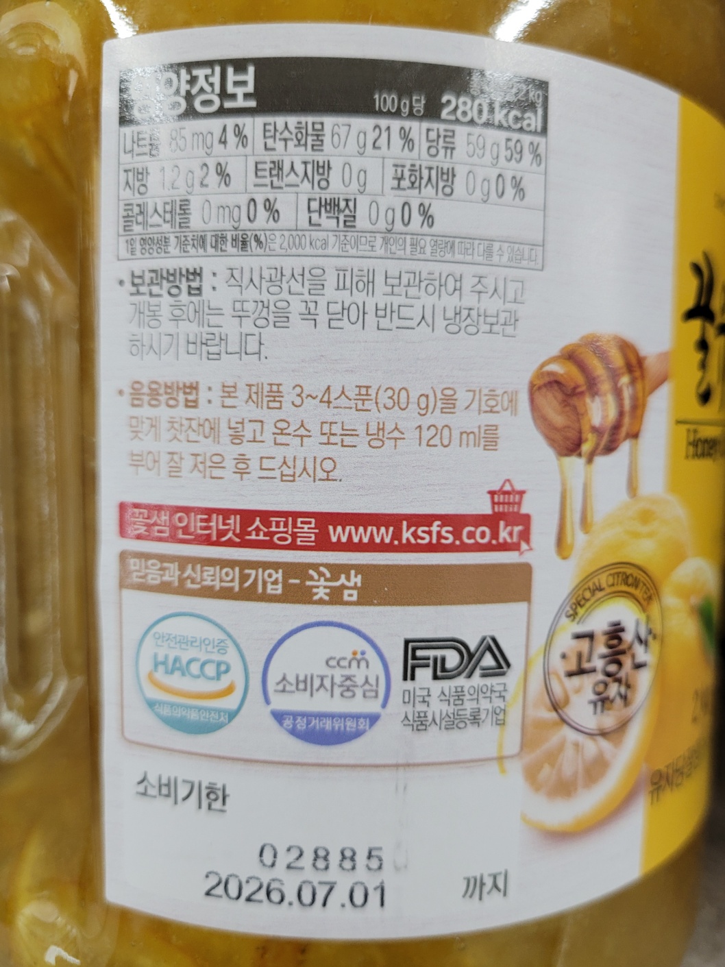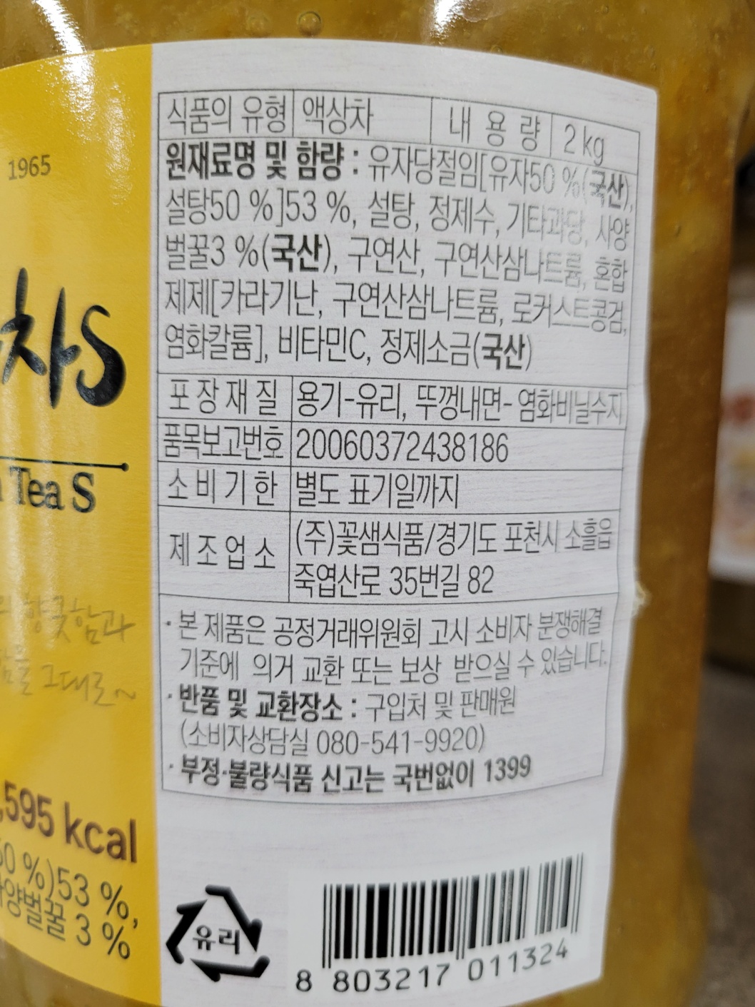 유자차(꿀유자차/꽃샘/병/다녹)2kg