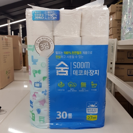 화장지(3겹/30롤/두루마리/숨/100%천연펄프)27m*30롤