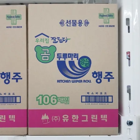 행주(106매(300*500mm)*2롤/유한/항균/곰돌이/두루마리)box