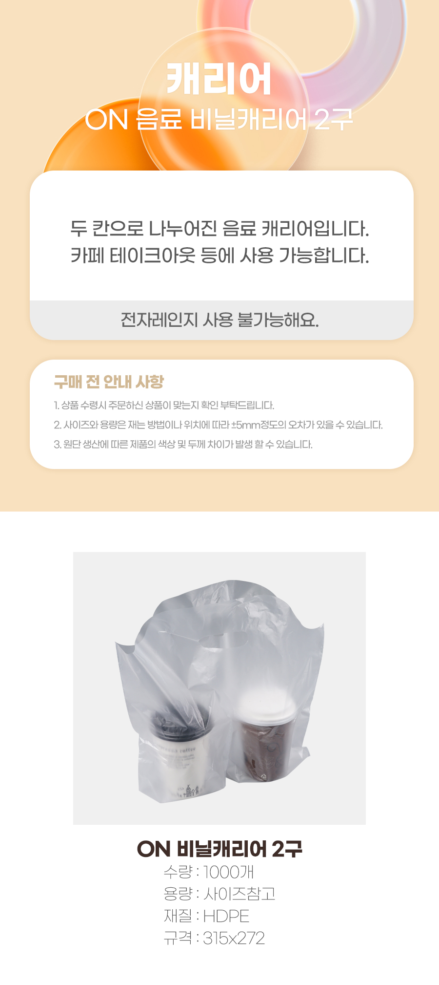 ![[ON] 비닐 캐리어 2구 커피컵 테이크아웃 1000매 [1박스] 이미지](https://content.foodspring.co.kr/vendor/2550/images/33_5480267126_r.jpg?f=webp&s=876x876&t=inside)