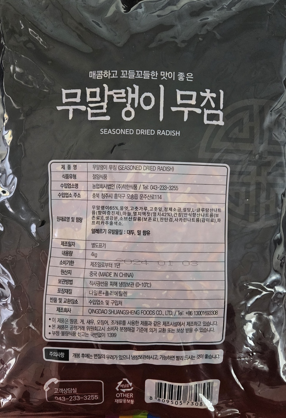 착한식품 무말랭이무침 4kg 냉장 이미지