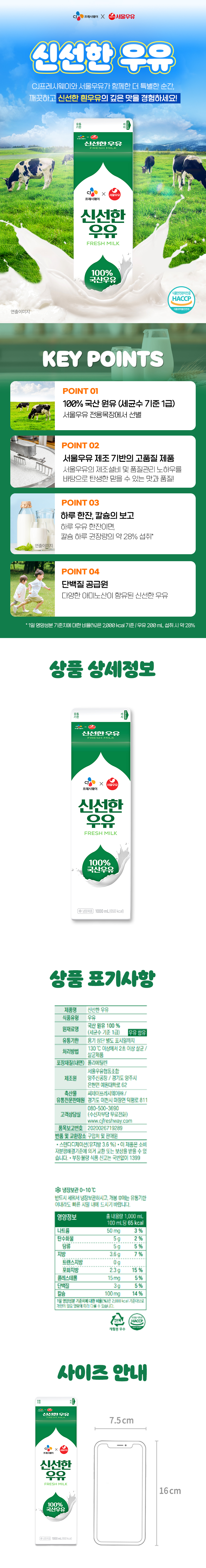 CJ프레시웨이 X 서울우유 흰우유 원유 100%