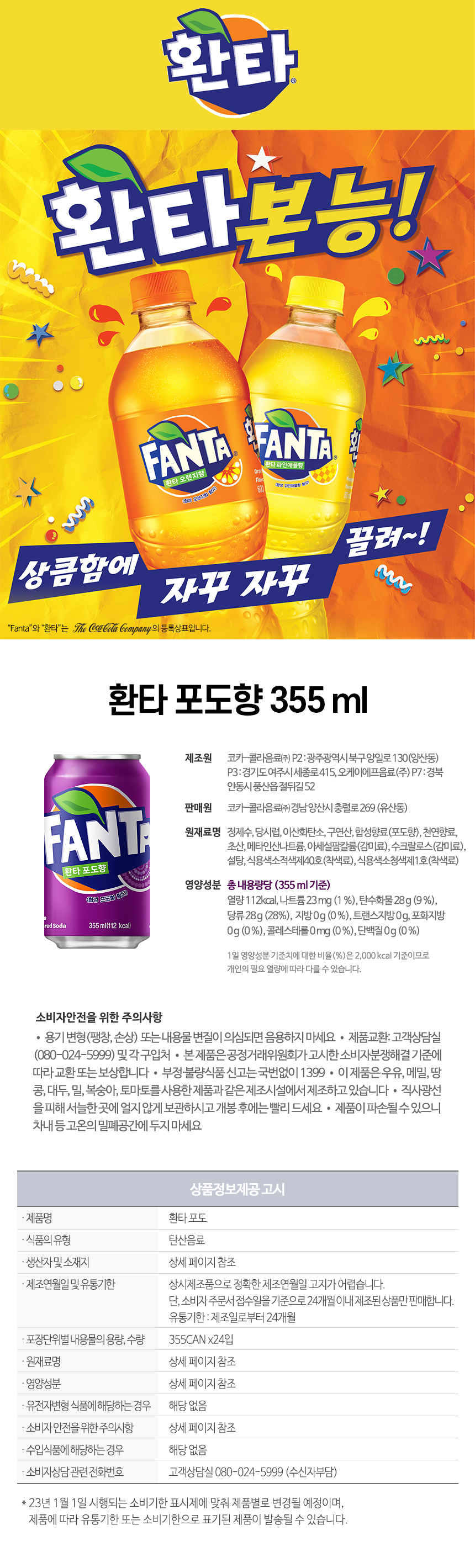 ![[무료배송] 환타 오렌지 355ml 1박스 + 환타 포도 355ml 1박스 총 48개 이미지](https://content.foodspring.co.kr/vendor/862/images/47_3700721081_r.jpg?f=webp&s=876x876&t=inside)