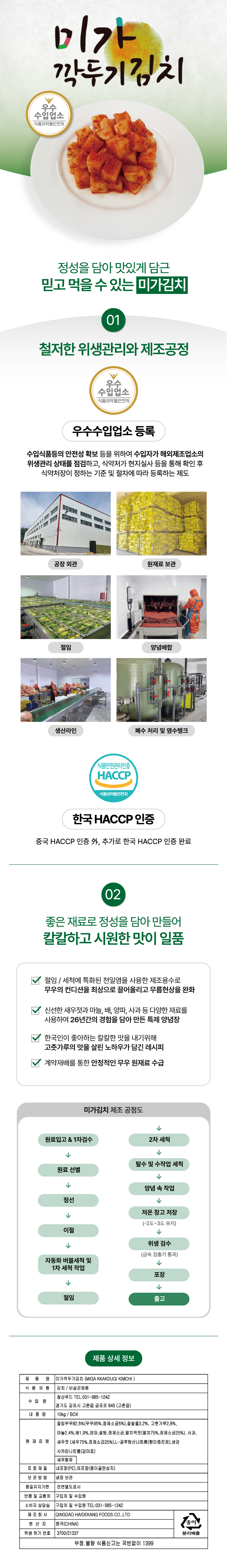 ★초특가★ 미가 깍두기(10Kg/BOX) 중국산 업소용 반찬 김치