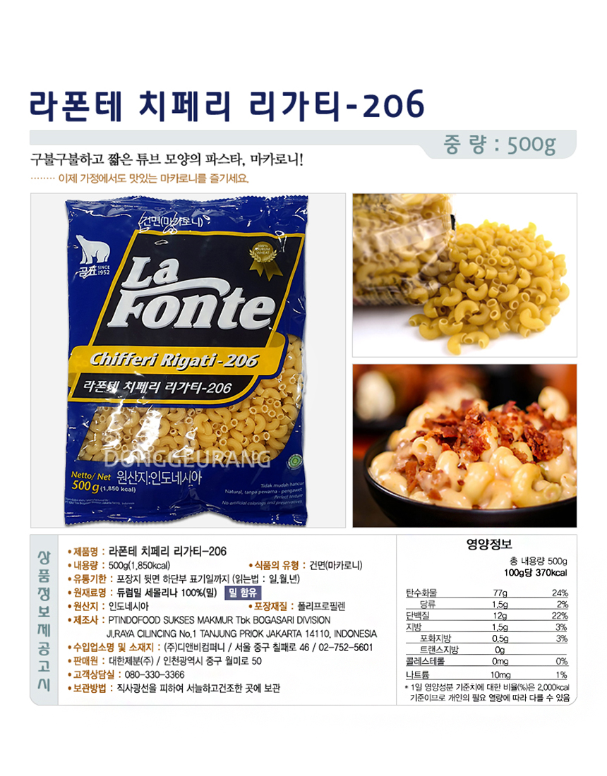 곰표 라폰테 마카로니 (남색/파스타/건면) 500g 이미지