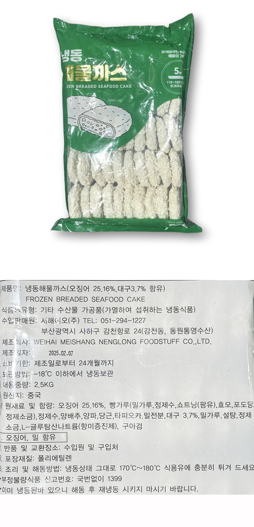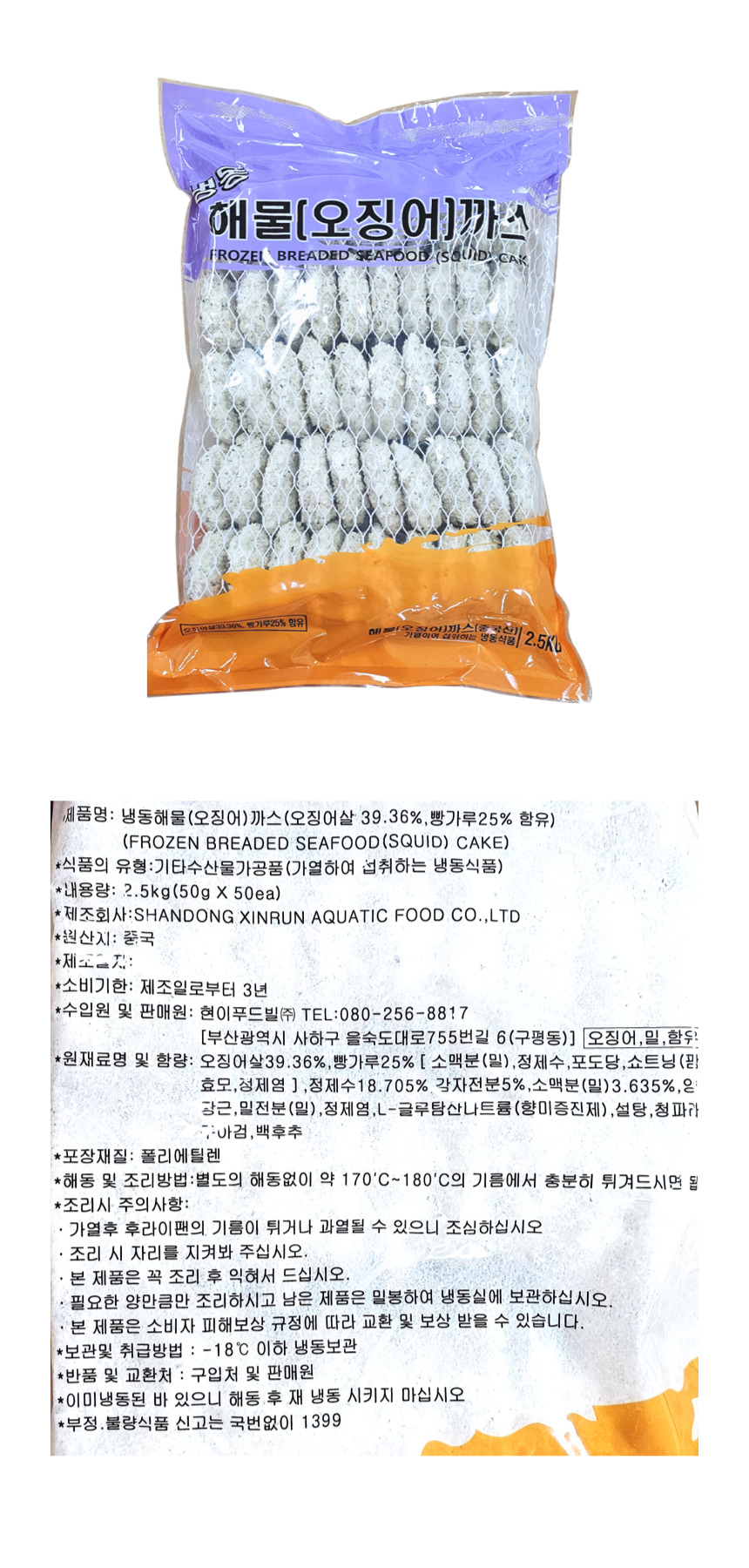 냉동 해물오징어까스 2.5kg 튀김 이미지