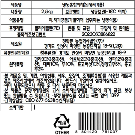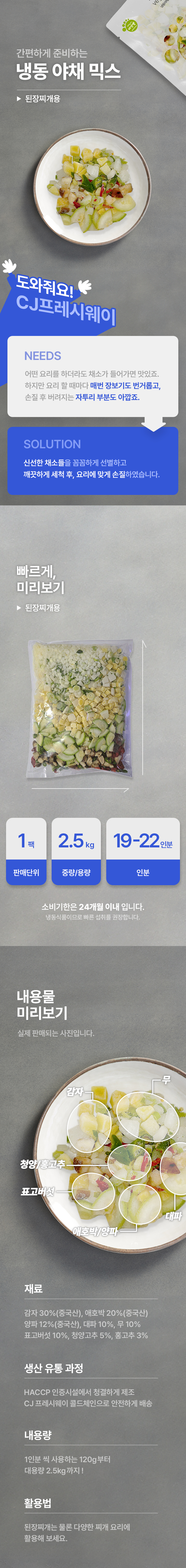 된장찌개용 혼합채소(냉동 2.5kg/EA) 19~22인분 야채믹스
